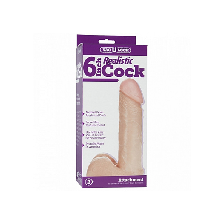 Doc Johnson - Vac-U-Lock - Realistisk dildo, 6" Lys Hudfarge