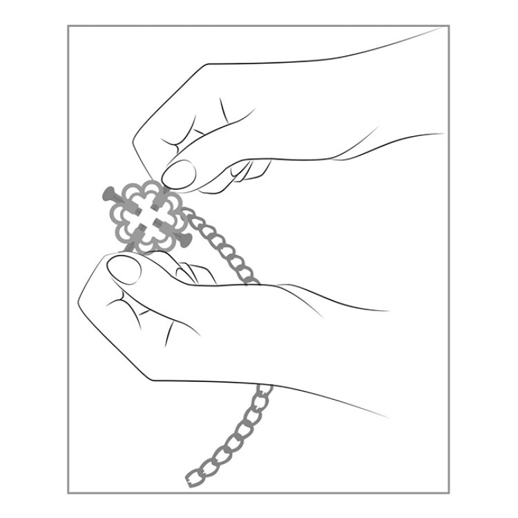 Dette frekke smykket festes rundt brystvortene og er koblet sammen med et lekkert kjede. De stilfulle klemmene holder brystvortene på plass med fire justerbare skruer, slik at du enkelt kan variere mellom lett til fast grep.