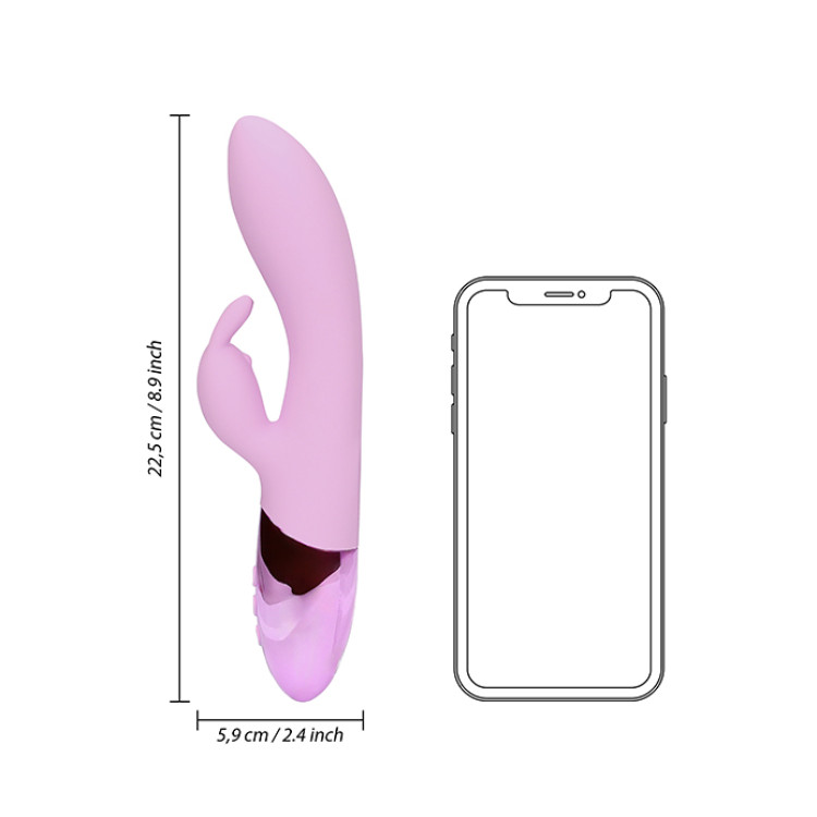 Den buede tuppen er formet for å nå G-punktet presist, mens de klassiske "kaninørene" på klitorisdelen gir en mer omsluttende stimulering og er perfekt for deg som ikke vil ha alt fokuset "rett på" klitoris. Ørene vibrerer på hver side og skaper et intenst, men skånsomt trykk rundt klitoris, en teknikk mange opplever som mer behagelig og orgasmisk.