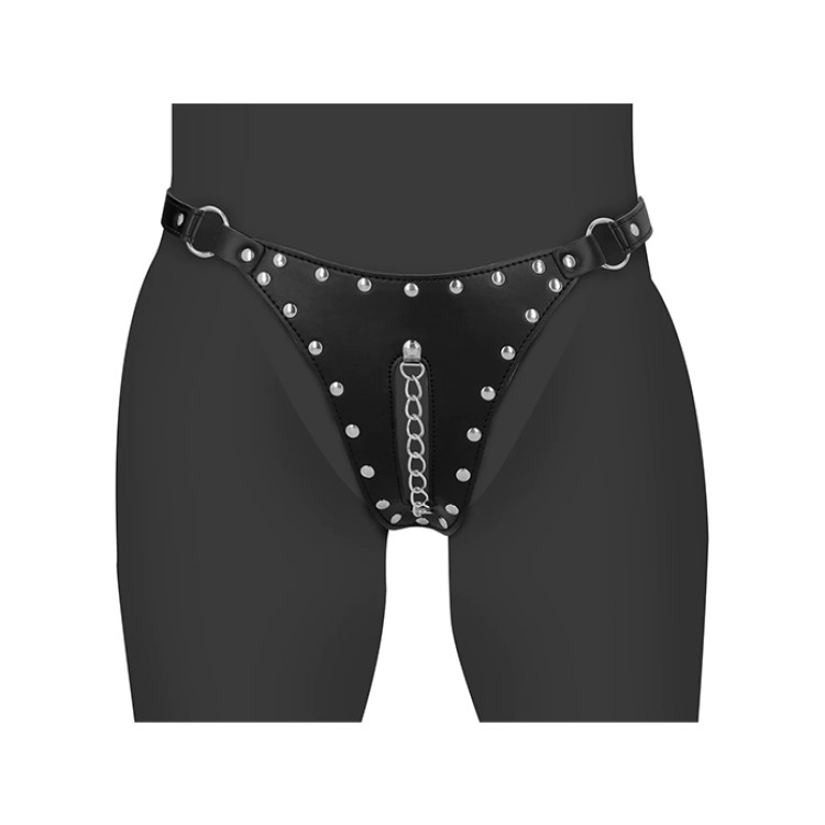 PU-lær string med kjettingdetaljer - et dristig undertøy som setter tonden for både lek og dominans.