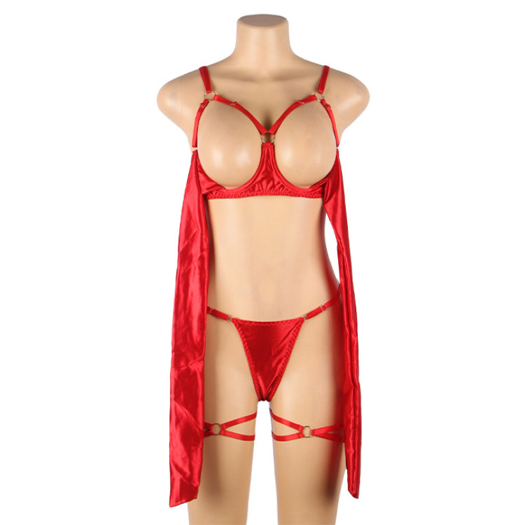 Satinstroppene kan knytes i sløyfe over brystene og åpnes for lett tilgang.