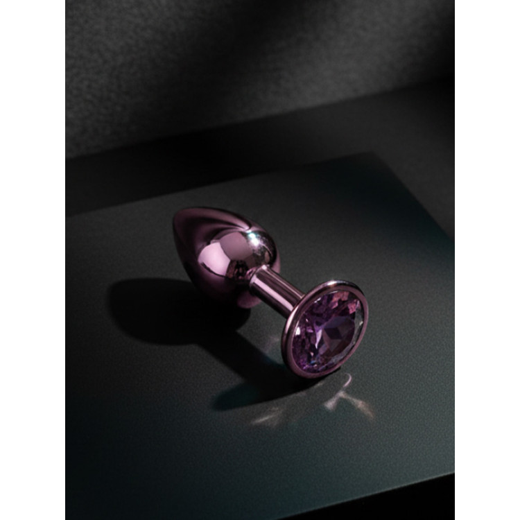 Buttplug i matt rosa metall med rosa krystall.