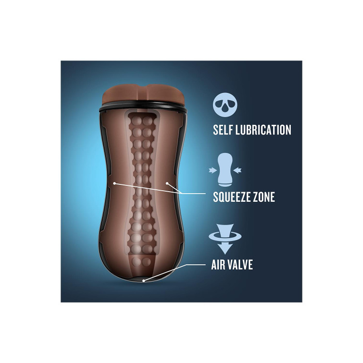 Ønsker du mer stimulering? Hold over ventilen i toppen og oppdag deilige sug som vil gjøre deg helt vill! Masturbatoren har også et stimulerende mønster som gir det lille ekstra under opplevelsen. Masturbatoren kan også klemmes lett på midten for å regulere trangheten!