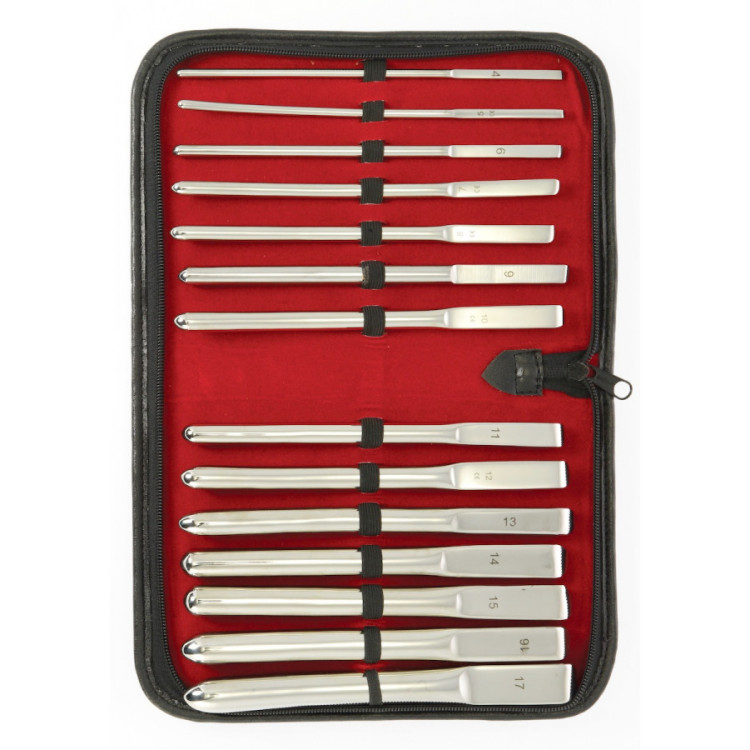 Dilatorsett med 14 forskjellige størrelser, til utvidelse av urinrøret og sounding lek. Dilat..