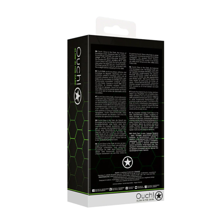 Ouch! Hogtie - Glow in the Dark! Dette unike hogtie-tilbehøret kombinerer klassisk BDSM-stil med en spennende, selvlysende vri som lyser opp mørket og gir en ekstra dimensjon til leken. De fluorescerende, grønne detaljene gløder når lyset slukkes, og skaper en elektrisk atmosfære som garantert setter stemningen.
