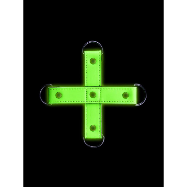 Nøkkelord: Hogtie, Ouch! Glow in the Dark hogtie, selvlysende bondage, BDSM glow in the dark, glow-in-the-dark hogtie, bondage tilbehør, hogtie for hånd- og ankelmansjetter, Ouch! BDSM produkter, fluorescerende bondage, festeelement for BDSM